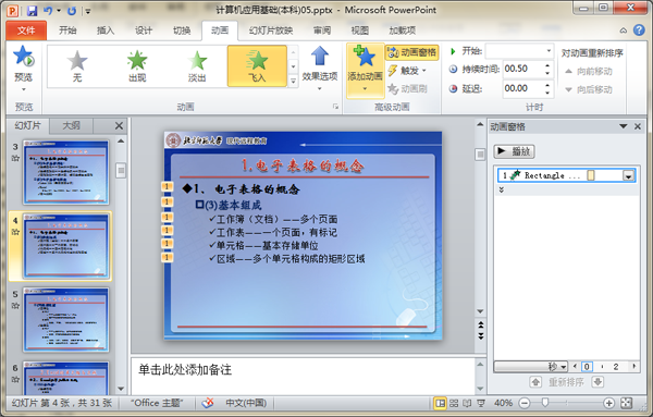 首先,在【动画】选项卡中,先单击【动画窗格】,以便在右侧打开“动画窗格”。如图5-28所示。