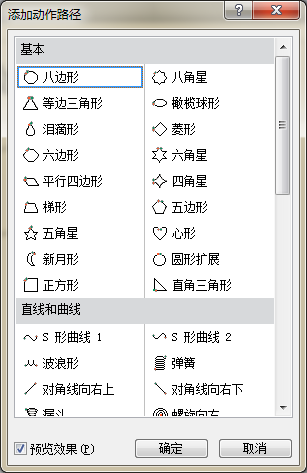 第五,从“添加动画”列表中选择【其他动作路径】,打开【添加动作路径】对话框。如图5-31所示。